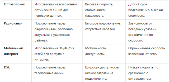 Современный бизнес невозможно представить без стабильного и высокоскоростного интернета. В условиях постоянно растущей конкуренции и ускоряющейся digital-трансформации, надежное подключение к интернету становится важным фактором успеха. В этой статье мы обсудим, как провести интернет в офис, склад, завод и другие бизнес-объекты, а также какие варианты подключения существуют для индивидуальных предпринимателей и юридических лиц. Существует несколько основных способов подключения интернета, каждый из которых имеет свои преимущества и недостатки: Для начала необходимо определить, какой тип подключения вам подойдет лучше всего. Если ваш офис находится в центре Балашихи или Москвы, оптоволокно может стать оптимальным выбором благодаря своей скорости и надежности. На заводах и складах, где требуется стабильная связь для автоматизированных систем и видеонаблюдения, также стоит рассмотреть возможность подключения интернета. В условиях растущей популярности интернет-торговли наличие быстрого и