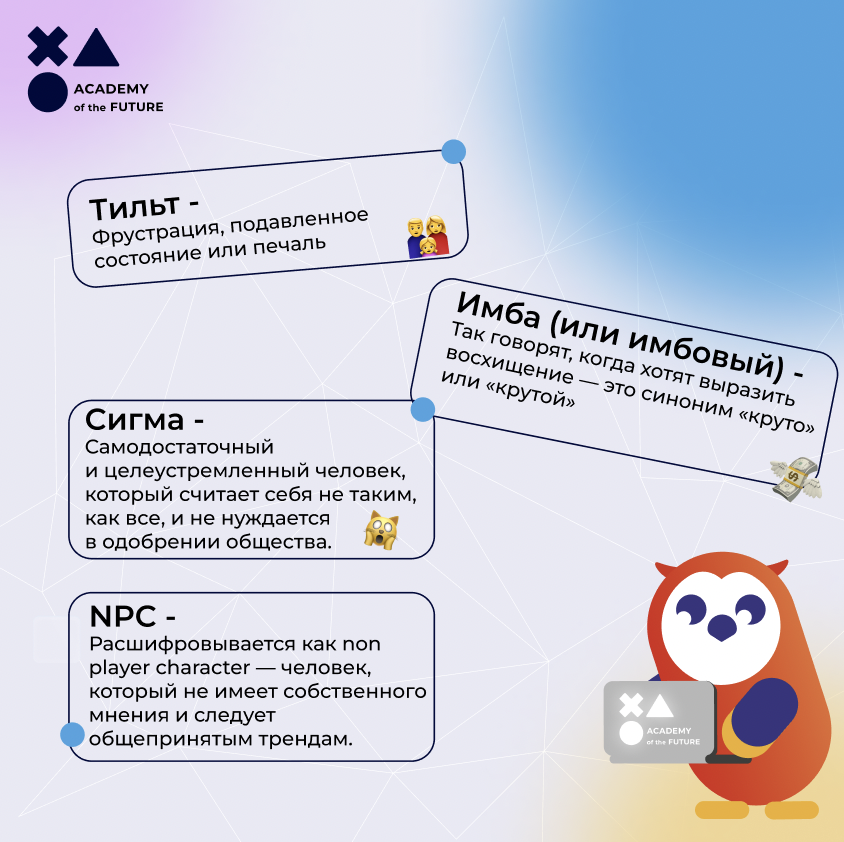 Для тех, кто в 2024 году все еще не уверен, флексит он или ливает, Академия Будущего Челябинск составил небольшую шпаргалку с новым сленгом зумеров.
