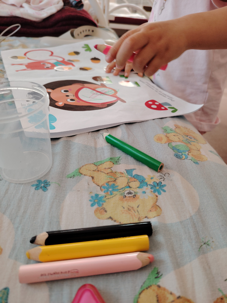 Если не ошибаюсь, мама в Фикс прайсе его купила. В принципе можно и сейчас дать его Люде, она уже легко клеит наклейки на то место, которое нужно. Однако выбирать цвет для раскрашивания ей сложновато... Хочу, чтобы она разукрашивала эти рисунки осознанно, сама.