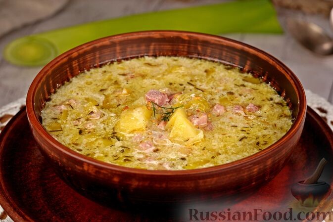 Картофельный суп с ветчиной, сливками и горчицей. Куриный суп с капустой и перцем. Томатный суп с говядиной и рисом. Куриный суп с грибами и горошком. Суп со свининой и брынзой. Куриный суп с капустой и болгарским перцем. Золотистый бульон, нежное куриное мясо, яркий сладкий перец и овощная зажарка, а также подача со сметаной делают капустный суп аппетитным и приятным на вкус. Томатный суп с говядиной, рисом и острым соусом готовится с красным перцем, чесноком и соусом чили. Остроту блюда можно регулировать, меняя количество этих ингредиентов. Рис для этого супа варится отдельно. Подаётся пикантный суп со сметаной или сливками. Куриный суп с грибами, горошком и сливками. Куриное филе предварительно обжаривается с приправой карри, грибы жарятся с луком и сладким перцем. Морковь в суп не добавляется. Консервированный зелёный горошек делает блюдо интереснее и сытнее. Сливки смягчают вкус супа. Суп со свининой и брынзой – простой в приготовлении, но интересный и сытный. Насыщенный мясной