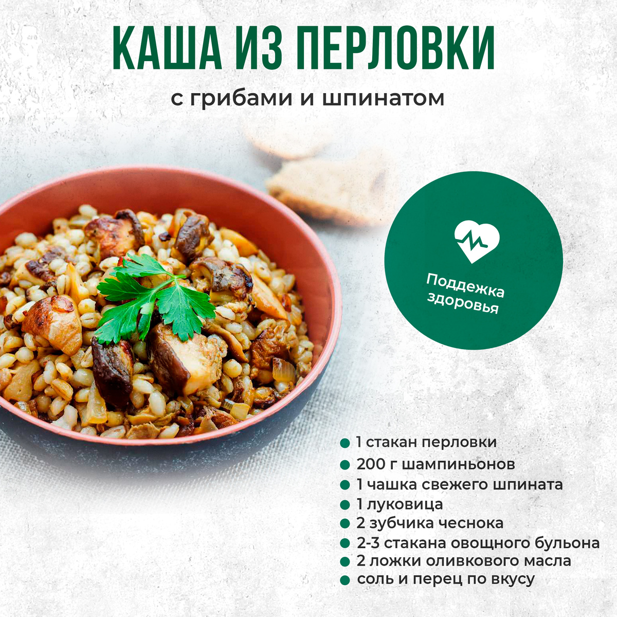 Этот рецепт помогает поддерживать здоровье кишечника благодаря высокому содержанию клетчатки и витаминов. Перед подачей добавьте немного тертого сыра для дополнительного вкуса. Каша из перловки с грибами и шпинатом — это сытное и полезное блюдо, которое поддерживает здоровье кишечника благодаря высокому содержанию клетчатки и витаминов. Легкая в приготовлении и насыщенная вкусом, эта каша станет отличным вариантом как для завтрака, так и для обеда, добавляя разнообразие и пользу в ваш рацион.