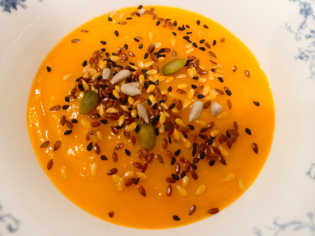 Вы можете просто пожарить картошку с луком и подать к ней сырую натёртую морковь. Но суп-пюре из того же набора получится легче для желудка и оригинальнее. Морковь сделает суп ярким и немного сладковатым. Обжаренный лук придаст карамельные нотки. А благодаря картофелю он будет густым и питательным. 🥕Морковь - 2 шт. 🥕Картошка - 3 шт. 🥕Лук - 1 шт. 🥕Вода - 2 стакана. 🥕Соль - по вкусу 🥕Чёрный перец - по вкусу. 🥕Зелень 🥕Семечки (тыквенные, кунжут, смесь семян - какие есть). На этом этапе можно так же добавить плавленный сыр или горячие сливки. Приятного аппетита! Дети просто обожают такой сладкий супчик🫶.