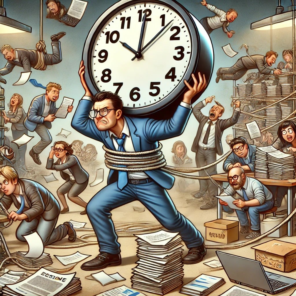 Всем привет! Я — ваш Пятничный Менеджер и давайте честно поговорим о том, что на этой неделе всем нам слегка потрепали нервы - это Парадокс ожиданий сроков и Парадокс коммуникаций. О да, мы их любим! Ведь что может быть лучше, чем пытаться ускорить проект и одновременно провести десять встреч, на которых решается… ну, почти ничего? 🤷♂️ ⏱️ Парадокс ожиданий сроков: "Ну, просто быстрее делайте!" Знаете, я всегда думал, что если очень сильно постараться и ускорить работу, то всё пойдет как по маслу. Ну, по крайней мере, я думал так до тех пор, пока не понял одну вещь: чем больше ты всех торопишь, тем больше ошибок они делают. Я говорю: "Сделайте побыстрее!" А команда: "Да, конечно! Сейчас-сейчас!" И вот… через пять минут у нас уже пожар, потому что кто-то забыл про важную деталь. 🤦♂️ 🧠 Мозг под давлением сроков... Срочность делает с нашими мозгами удивительные вещи: вместо того, чтобы думать, мы просто выживаем. Мозг переходит в режим "бей или беги", и пока вы пытаетесь ускорить за