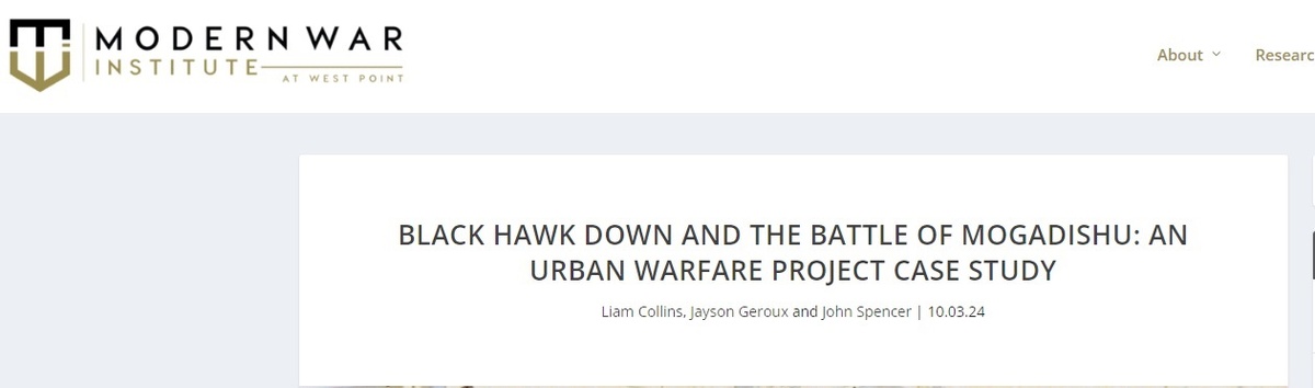 Американский Институт изучения войны (MWI, Modern War Institute) на своем сайте опубликовал статью-анализ по следам "Падения "Черного ястреба"- по следам событий в Могадишо, когда грозные американцы нахлебались по полной в городских боях против бармалеев в сандалиях.