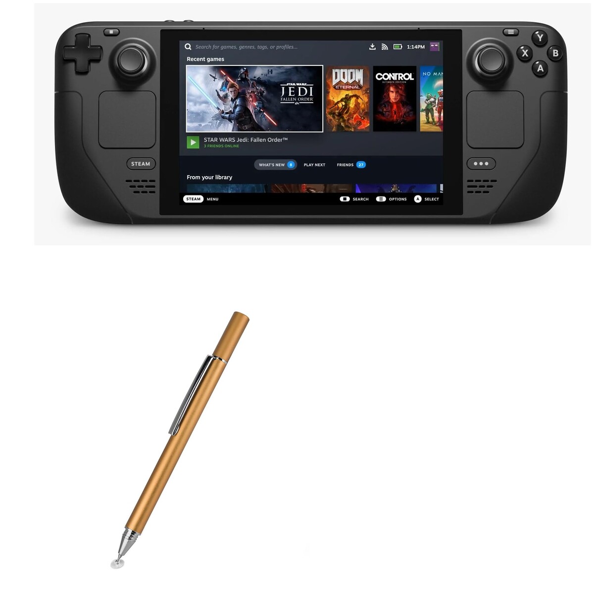 Можно нажимать на экран не заляпывая его. Защищает поверхность тач-скрина. Можно играть в Steam deck дистанционно. Можно взять все аксессуары и Steam Deck. Можно играть как на ПК если подключить клавиатуру и мышку с помощью док-станции.
