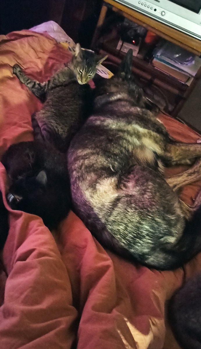 А вы знали, что когда наступают холода, то большая тёплая собака - это очень удобно и практично? Кошка Лиза и кошка Люся знают, например. Берите на вооружение - рабочая идея😁