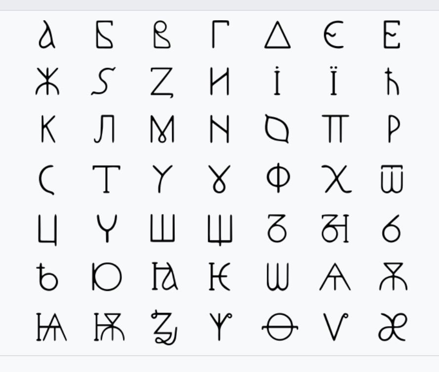 Представляется как утраченный алфавит древних славян, несущий кроме собственно записей текста, особый сакральный смысл.