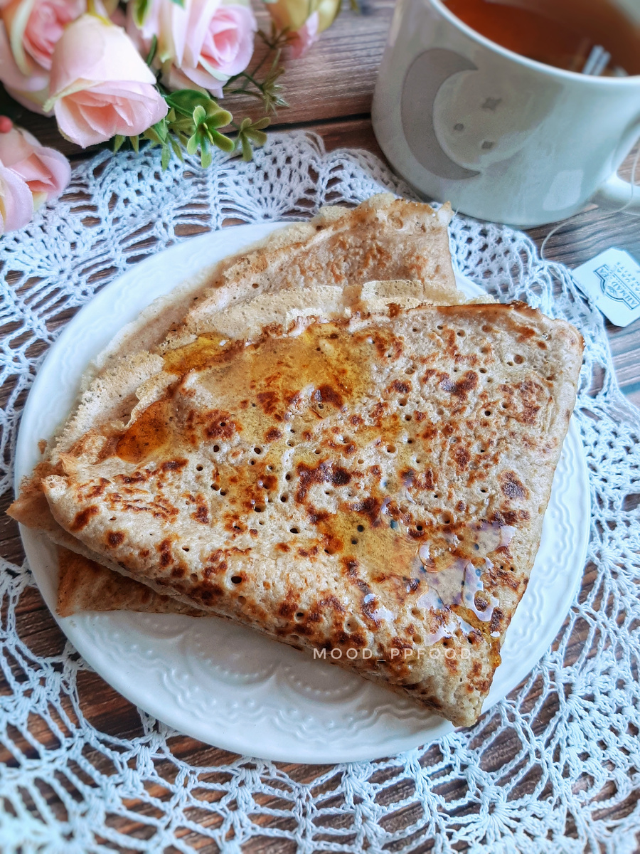 Яблоко - 150 г. (Вес натёртой массы) Яйцо куриное - 2 шт. Молоко 2.5% - 350 г. Мука Рисовая - 50 г. Мука Овсяная - 40 г. Масло растительное (в тесто) - 10 г. Разрыхлитель - 5 г./1 ч.л. Корица - 2 г./ 1/2 ч.л. Подсластитель по вкусу, у меня 5 г. Prebiosweet. Масло д/жарки - 5 г. 1️⃣ Яблоко очищаем от семян и кожуры, и натираем на мелкой тёрке. 2️⃣ В 350 г. тёплого молока (предварительно подогреваем в микроволновке, но без фанатизма 😄) разбиваем два яйца и добавляем подсластитель. Перемешиваем венчиком. 3️⃣ Добавляем: 50 г. рисовой и 40 г. овсяной муки, чайную ложку разрыхлителя (5 г.) и половину чайной ложки (2 г.) корички. Снова всё перемешиваем. 4️⃣ Добавляем натёртые яблочки, перемешиваем и оставляем тесто в покое на 10 минут. 5️⃣ По прошествии времени, добавляем 10 г. растительного масла и снова перемешиваем. 6️⃣ Сковороду разогреваем и смазываем перед первым блинчиком, дальше уже по желанию. Выливаем половничек теста и распределяем тонким слоем по сковороде. Убавляем температу