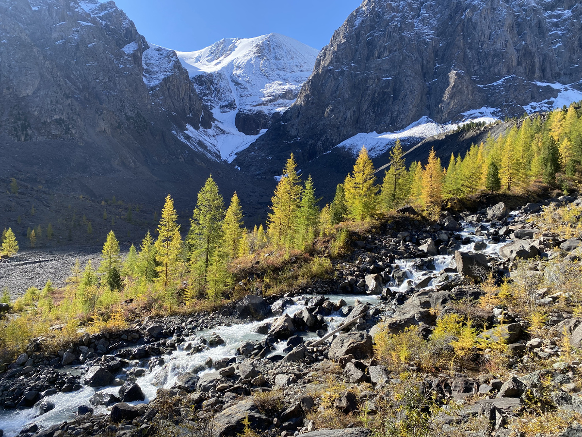 До ледника Левый Большой Актру мы дошли за 3 часа: пройденное расстояние составило 4.7 км., а набор высоты - 700 м.