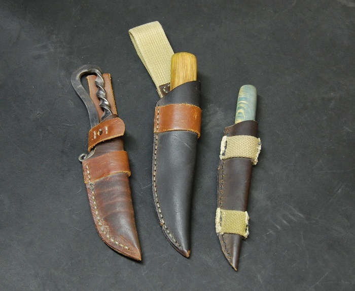 Этот нож поработал довольно неплохо. Хоть и особо неприметный, но довольно удобный. Отлично помещается в карман и в лесу хороший помощник Ножны у него из кожи. Тоже самодельные. Остатки тряпочного ремня это попытка в интересную систему подвеса. Толком ничего не получилось и осталось как есть.