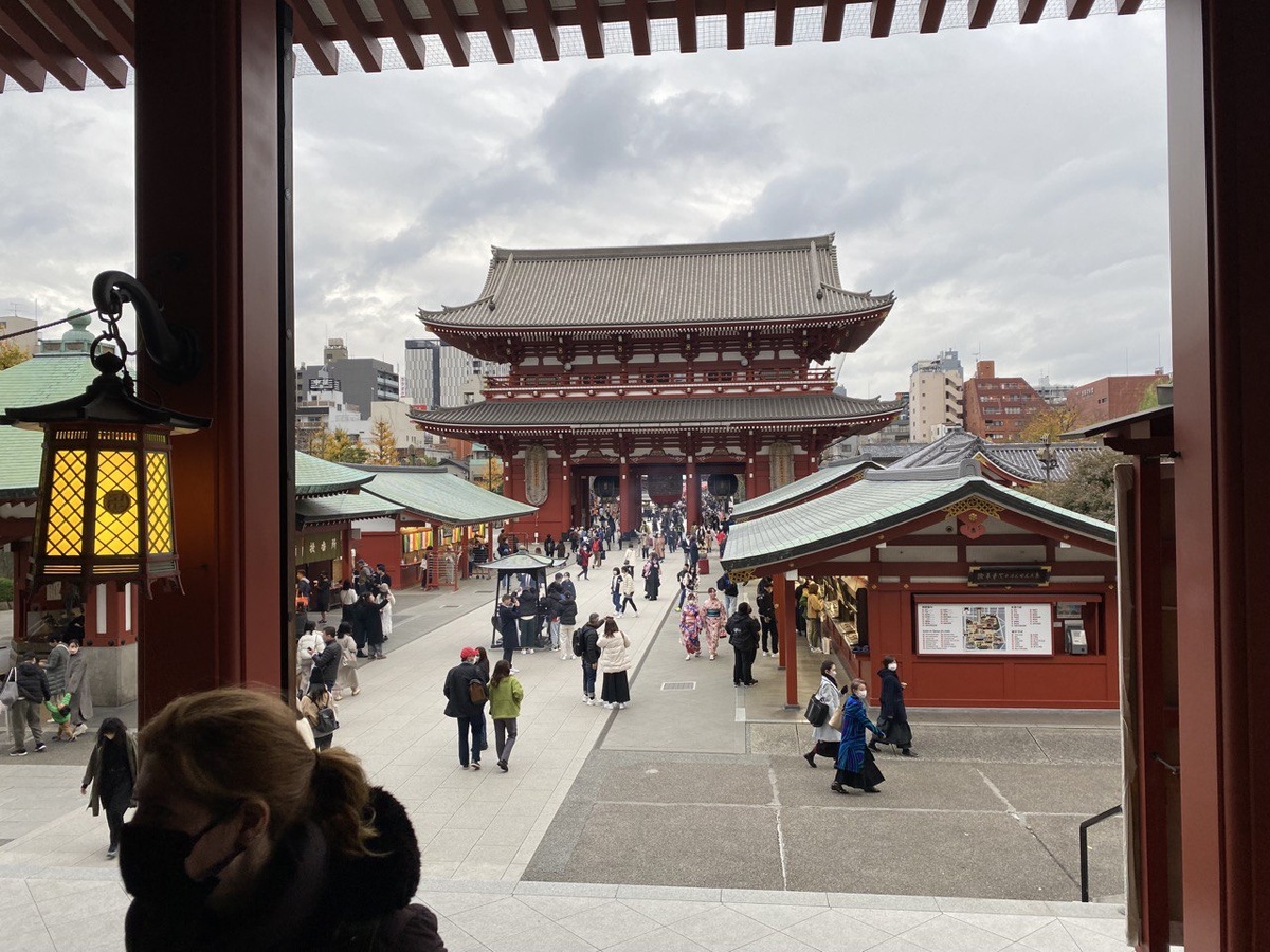 16.2. Токио: Храм среди сувенирных лавочек Сэнсо-дзи или Асакуса - древний храм буддийской школы Сёканнон, что находиться в районе Асакуса города Токио. Полное название храма - Конрюдзан Сэнсо-дзи. Сначала мы увидели центральные ворота Каминаримон древнего токийского храма Сэнсодзи. Впечатлили!! Грандиозно, необычно (для нас) и как-то даже сказочно немного… Каминаримон - «Врата Грома» - сооружение буддийской архитектуры, с большими бумажными фонариками, которые раскрашены в красный и черный цвета, изображают молнии и грозовые тучи. Пройдя ворота, мы оказались на улочке, где много различных сувенирных лавок, которые протянулись на 250 метров до самых ворот Храма. В самом дворе стоит пять прекрасных пагод, а также главный зал в честь бодхисатвы Каннон. На втором этаже расположена сокровищница с древними китайскими сутрами. Согласно древней легенде, храм Сэнсо-дзи был основан еще в 628 году, благодаря двум братьям-рыбакам, которые ловили рыбу, и в сети им попала золотая статуэтка богини