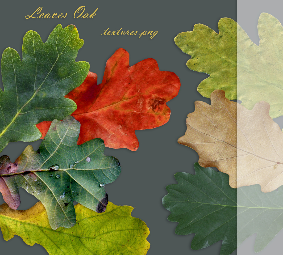 Текстуры листьев, веток и плодов дуба в формате PNG_01