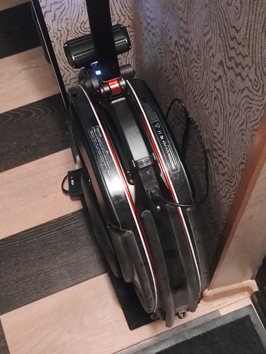 На полных 2 круга ушло 3м ленты. При тестах я настроил преобразователь напряжения при 5м неонки на мощность потребления 4.6вт (1А). На выходе получилось в районе 3.5вт. На 3м неонки значение стало ниже и потребление, должно быть в районе 0.7А, т.е. всего около 3вт. При этом штатная на максимальной яркости с белым свечением жрала, как помним, 13.5вт. Я так штатную не использую никогда, поэтому неонка + боковая подсветка не смогут перегрузить понижающий преобразователь напряжения на плате контроллера самого моноколеса.