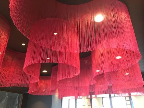 @Ленточные. Их можно встретить не только в жилых апартаментах, но и творческих студиях, барах. Такие полотна представляют собой спускающиеся потоки лент, на которые нанизаны большие бусины из дерева, пластмассы или стекла.