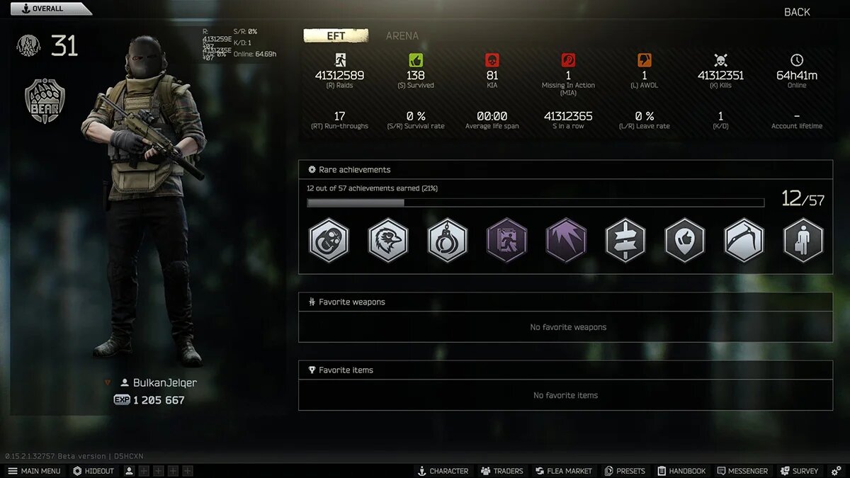 Пользователи сети обнаружили странную статистику у некоторых игроков в Escape From Tarkov: согласно ей, в шутере есть ветераны, которые сыграли как минимум 1 миллион рейдов и убили более миллиона соперников. Один из самых невероятных результатов: более 41 млн рейдов и около 41 млн убитых игроков. Впрочем, при 41 млн рейдов игрок выжил 138 раз и погиб 81 раз, что явно намекает на баг со статистикой. К тому же с учётом вайпов достичь таких результатов даже за два-три месяца в Escape From Tarkov невозможно. Недавно создатели Escape from Tarkov и Escape from Tarkov: Arena показали дорожную карту развития игр: тот же Escape from Tarkov переведут на новую версию Unity. Также планируется улучшение ИИ ботов, улучшение оптимизации, смена игрового сезона на осень и т. д. Источник: Канобу