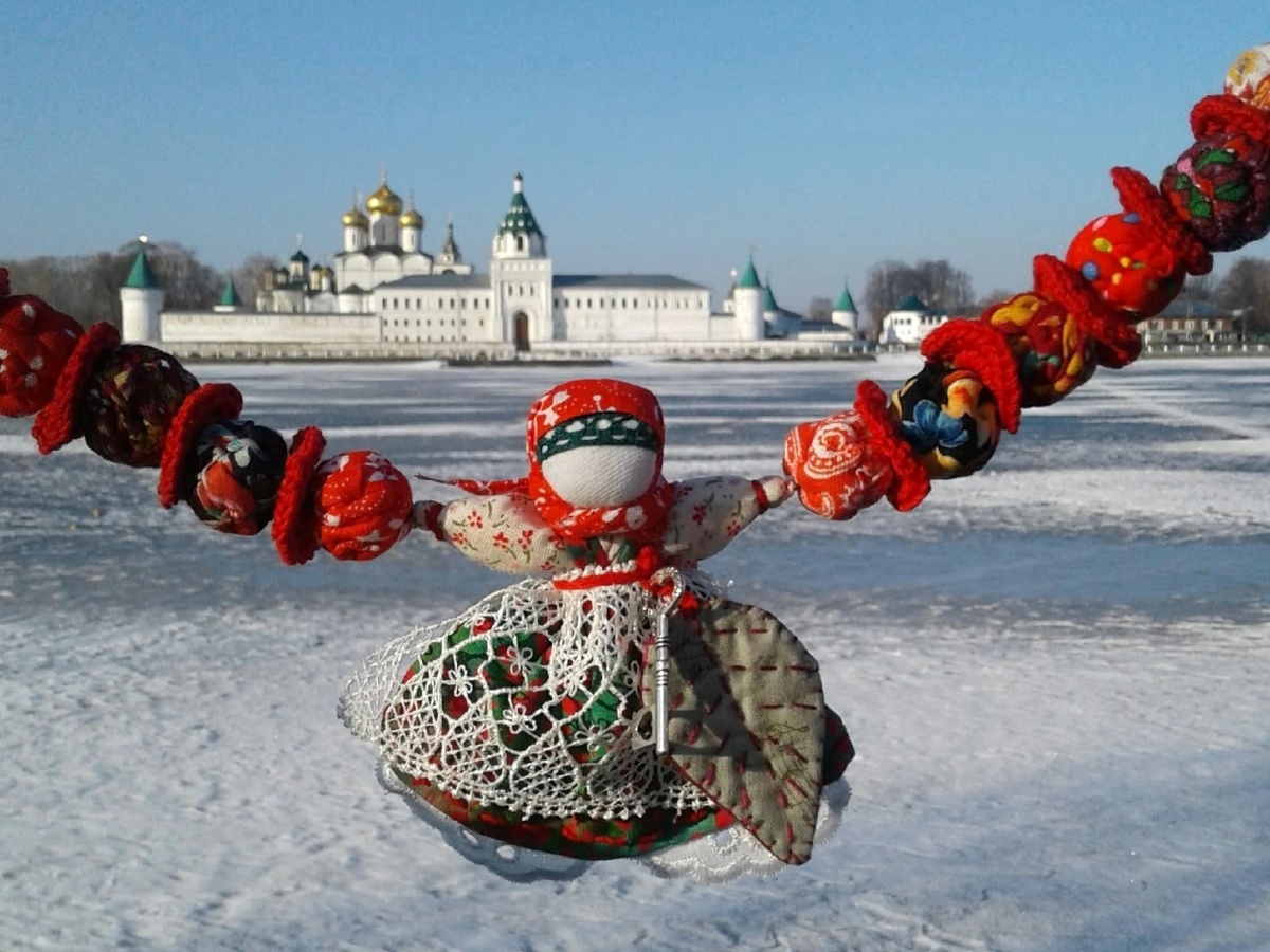 Куколки лоскутные, красавицы, тоже без украс выступать не готовы.
