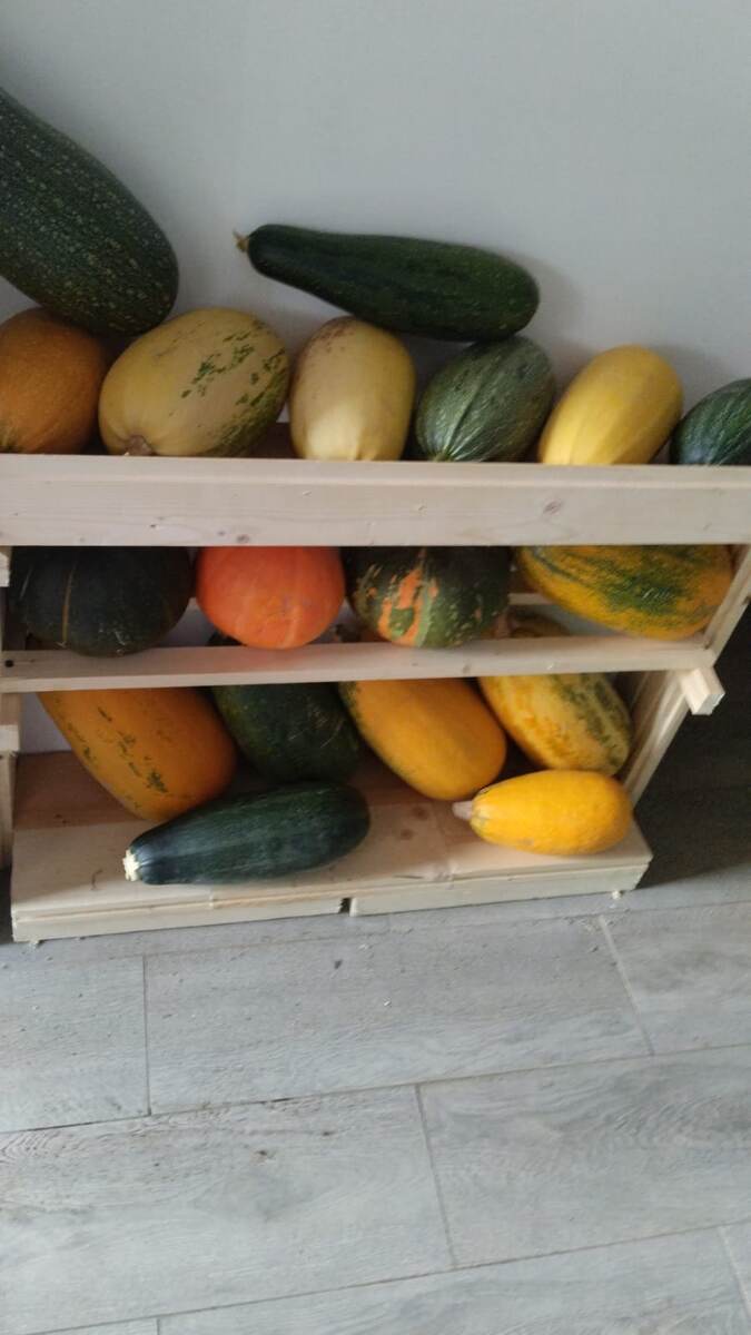 Привет, друзья! Иногда я пишу про свой проект "Ы". Об этом можно почитать в специальной подборке=> Мы потихоньку в своём маленьком домике наводим порядок перед длинной зимой. Выстирали и убрали летнюю одежду, заодно избавились от ненужных вещей. У нас их не много было, но все же иногда копятся. Я прибралась в своём смешном огороде, собрала много пластика "на выкид". Это 2 лейки, одна продырявилась , вторая крошиться стала, пара сломанных пластиковых ящиков и обрезки пластиковых труб- все это @denseman отвезëт к Глобусу, в специальные контейнеры для раздельного сбора мусора. Ещё скопились металлические банки из под краски, тоже надо будет отвезти туда же, при случае. Пока я прохлаждалась на море, @denseman по моему заказу сделал полочку для хранения кабачков, назвал её "Кабачатница" , получилось забавно и почти все наши кабачки туда убрались. Стоит эта полочка в коридоре и места занимает очень мало. Очень функциональная вещь получилась. А вот еще небольшие залежи кабачков.