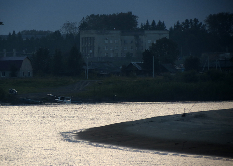 В сутках с лишним речного пути от Омска впереди показалось большое северное село (вернее, ПГТ, 6,6 тыс. жителей) с персидским названием Тевриз. Тут ждёшь увидеть скорее глиняные медресе с голубыми куполами и танцами орнаментов на стенах айванов... но впереди лишь бетонный ДК: На самом деле реально одно из самых загадочных мест Омской области: ну отказывается мозг верить в официальную историю (основано в 1730 году как почтовая станция, а в 1789 как переселенческое село выходцев из Тамбовской губернии) села с таким названием, там более даже и речки Тевриз поблизости нет. Вот сложно отделаться от мысли, что без бухарцев, ещё в эпоху Сибирского ханства основавших на Иртыше немало селений, тут не обошлось. Более того, в 19 веке в Тевризе ещё и ткали ковры, и думается, окажись тевризский ковёр на Малой Арнаутской, он шёл бы там не хуже винницианского стекла. Но нынешний Тевриз - северное русское село, в окрестностях которого с 1970-х годов добывают газ. Главная достопримечательность - один