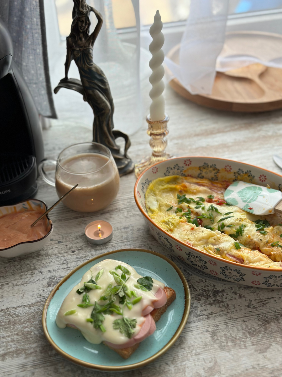 👇 👇 1️⃣Запеканка 🥘 мясная с овощами 🫑 Она безумно вкусная, вся семья в восторге, и едят даже привереды-дети))) На самом деле ингредиенты самые простые! Подготовка ингредиентов занимает от силы 10 минут, и само приготовление еще 30) 🍗фарш индейки 🫑перец сладкий 💫кабачок 🧅лук 🍅помидор 🧀сыр 🫛фасоль стручковая резаная Смазываю маслом противень. Нарезаем перец соломкой, кабачок кружочками и лук полукольцами, не обязательно тонко, все пропекается отлично) Помидор нарезаем кубиком, стручковую фасоль измельчаем пополам. Выкладываю на противень слоем кабачок, лук, затем фарш и снова кабачок, лук + помидор. Сыр твёрдый натираем на крупной терке и посыпаем обильно нашу форму с овощами и фаршем. Берём 3 яйца и хорошо взбиваем венчиком. Заливаю смесью нашу форму с мясом и овощами и отправляем в духовку на пол часа, при 200°С. 2️⃣Утренняя запеканка готова за 8 минут! Рецепт шикарной самой элементарной в мире запеканки 😍 - дети обожают!) 🔸Помидорчики 🍅 черри, любая