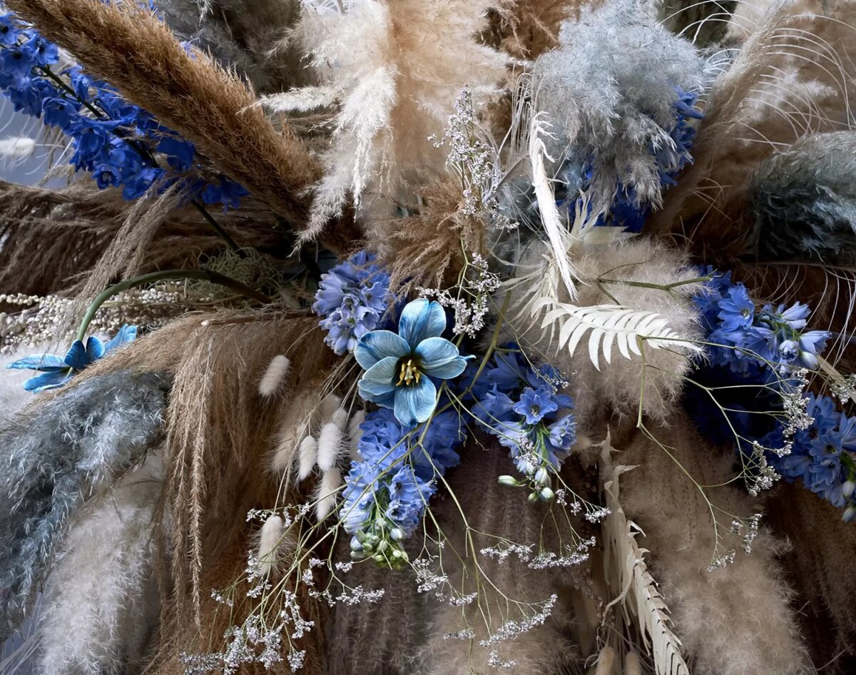 «Да, я согласена» в синем цвете Это не могло ускользнуть от вашего внимания: Pantone объявил «классический синий» трендовым цветом 2020 года. Добавьте к этому известное «что-то старое, что-то новое, что-то заимствованное и что-то синее», и у вас получится потрясающая тема для особой свадьбы. В последнем выпуске «Bloem & Blad», голландского журнала о флористике, был представлен прекрасный материал с множеством цветов. Под руководством приглашенного редактора Паскаля де Лаата из The House of Artz несколько флористов показывают, что с этой темой можно пойти во многих направлениях. Паскаль считает важным предлагать дизайнерам практическое вдохновение. Имея большой опыт в свадебной сфере, это несложная задача. Как насчет этого дивана для отдыха, задрапированного пышной гирляндой цветов? Или огромного цветочного облака, полного трав и синих цветов, которое украшает пространство над ним? Оба созданы дизайнером The House af Artz Мишель Любинк. Цветочные облака в настоящее время очень популярны