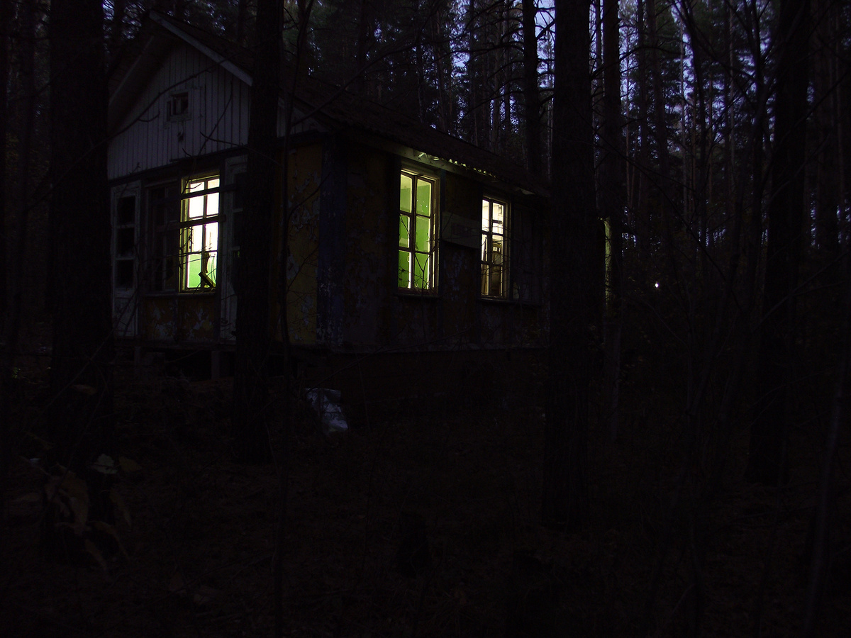 Холодный осенний вечер, лес, сумерки, очертания полуразрушенных домов и солнце, почти скрывшееся за горизонтом. В этот раз я решил отправиться в заброшенный пионерский лагерь, о котором я уже когда-то писал на своём канале. Для чего я приехал сюда в столь поздний час? Просто погулять в ночном лесу, насладиться таинственной и пугающей атмосферой и попробовать немного пофотографировать навсегда опустевшие корпуса… Бывать в заброшенных местах в тёмное время суток мне доводилось не так уж часто, однако такие случаи имели место. Изредка бывали различные истории и приключения, но все они были относительно безобидные. Что ожидает меня в этот раз? Неизвестно. Но пока ничто не предвещает беды, да и встретить здесь кого-либо вероятность маленькая: желающих погулять в такое время по старому лагерю не так уж много. Конечно, первое время поневоле страшно: прислушиваешься к каждому звуку и выискиваешь что-то или кого-то взглядом среди сосен и руин. Но стоит немного прогуляться по территории, как сра