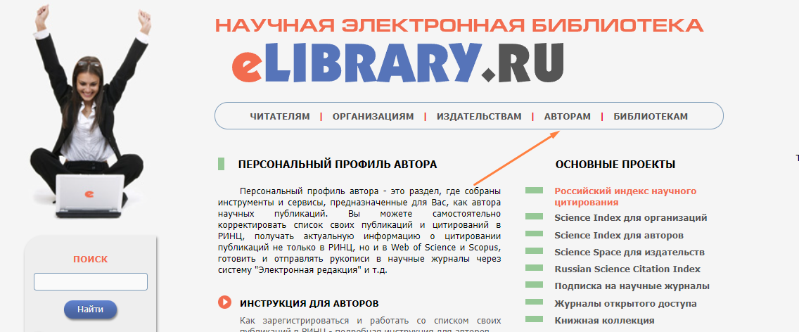 Друзья, доброго времени суток! С вами на связи Кристина Лукина — автор проекта "Секреты написания ВАК статей" и учредитель научного журнала "Прогрессивная экономика" (ВАК). Пользуясь случаем, можно вам еще вопрос задать? По опубликованной ранее статьи: с нас просят :в разделе «Комментарии» указываются выходные данные публикаций и SPIN-код, присвоенный при регистрации в РИНЦ Дорогие мои, SPIN-код — это идентификатор, который можно найти в личном кабинете автора на платформе елайбрари. SPIN-код — это персональный идентификационный код автора в системе SCIENCE INDEX. Чтобы получить SPIN-код, автору необходимо пройти процедуру регистрации в системе SCIENCE INDEX на сайте Научной электронной библиотеки eLibrary. После окончания процесса регистрации автору придёт письмо на электронный адрес, указанный в анкете. В письме необходимо нажать на ссылку активации регистрации в системе SCIENCE INDEX. 1. Заходим на платформу елайбрари, вводим свои логин и пароль. 2. Вкладка — Авторам. 3. Мои публи