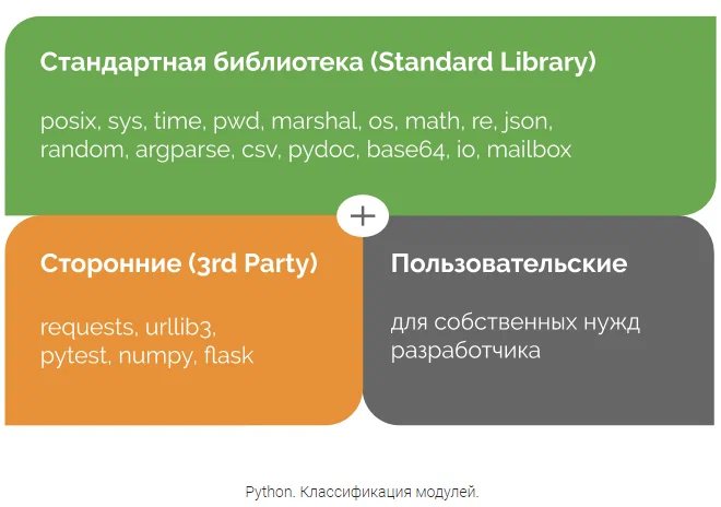 Программист может без проблем подключить любой модуль, который есть в стандартной библиотеке Python 3.