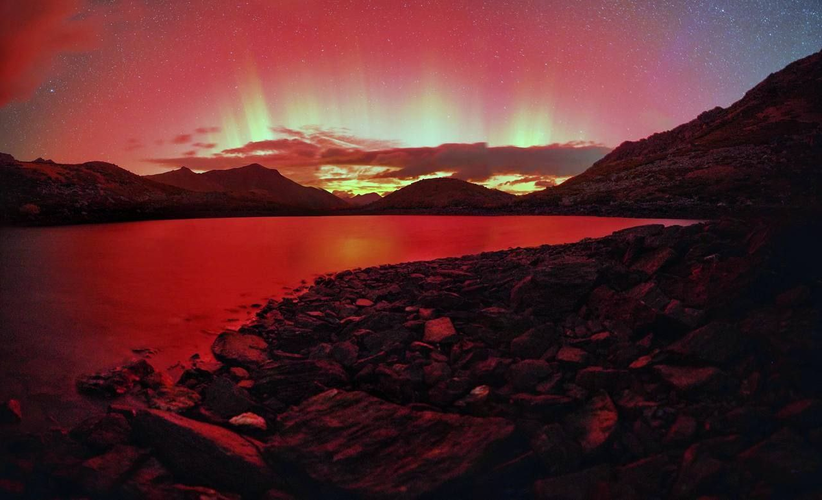 Редкое северное сияние окрасило небо Архыза в красные оттенки