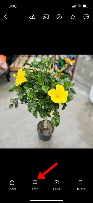 4. Как только откроется картинка, коснитесь значка Редактировать в нижней части экрана.