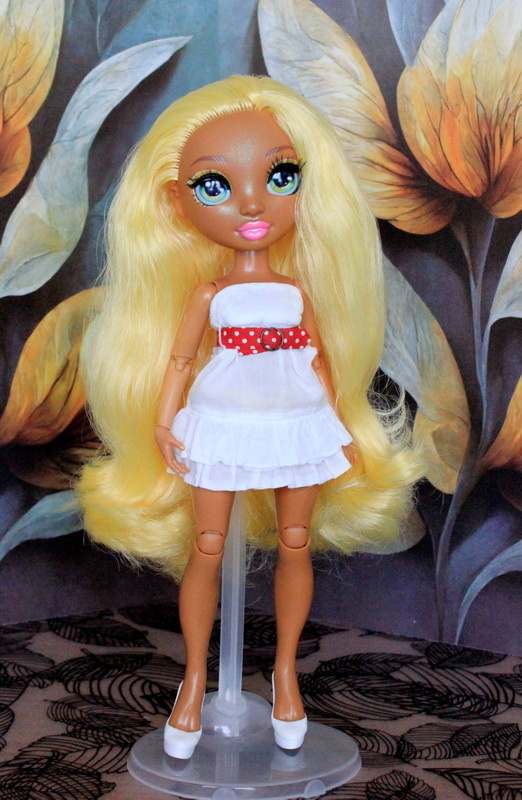 Головастиков я не очень, честно говоря. Когда-то давно-давно, когда Монстер хай только объявили о релизе и шла реклама, мы с девчонками тут же выкупили первую линейку, разобрав себе персонажей по вкусу. Лагуна была моим первым головастиком и меня это вполне устраивало. Потом была попытка поселить у себя кого-то вроде пуллип или блайз, но у меня развилась паранойя - мне казалось, что за мной натурально следят, прям, как в фильмах ужасов про кукол - избавилась от греха подальше. ))) Вокруг Рейнбоу хай я много лет ходила кругами, пока не попалась Санни по удивительной цене, я не смогла устоять и купила на пробу, что называется. И она прижилась. Конечно вбивается из общего ряда, однако она такая яркая и жизнерадостная! Правда, немного грустная, видимо потому что одна и никого ее формата рядом. Для поднятия настроения домашнему солнышку я подкараулила на Ягодном маркете парнишку по приемлемой цене. По-моему он не понимает, что происходит, как и Санни. Очень осторожно друг на друга смотрели