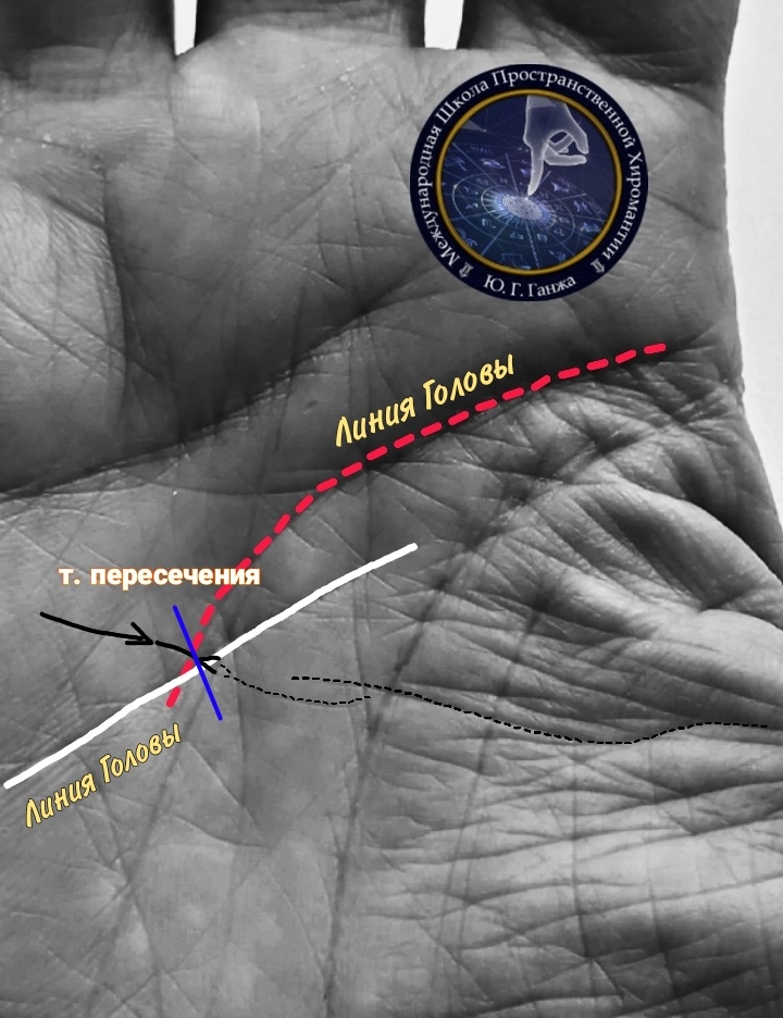 Интересный практический пример Наблюдаю на моей практике уже не первый случай, когда при пересечении линий Головы друг с другом, в возрасте точки пересечения у обладателя руки происходят проблемы физического плана с матерью. В данном случае её мать умерла от рака. Стрессовая от Жёсткой семейной линии также бьет в данную точку, дополнительно есть знак Раху. Линия Головы или Матри Рекха часто отвечает, или по ней можно отслеживать риски для здоровья матери. Милана Иннова Для связи со мной 89167173933 , WhatsApp, Telegram Моя группа для приёма в вк https://vk.com/malinaintegra