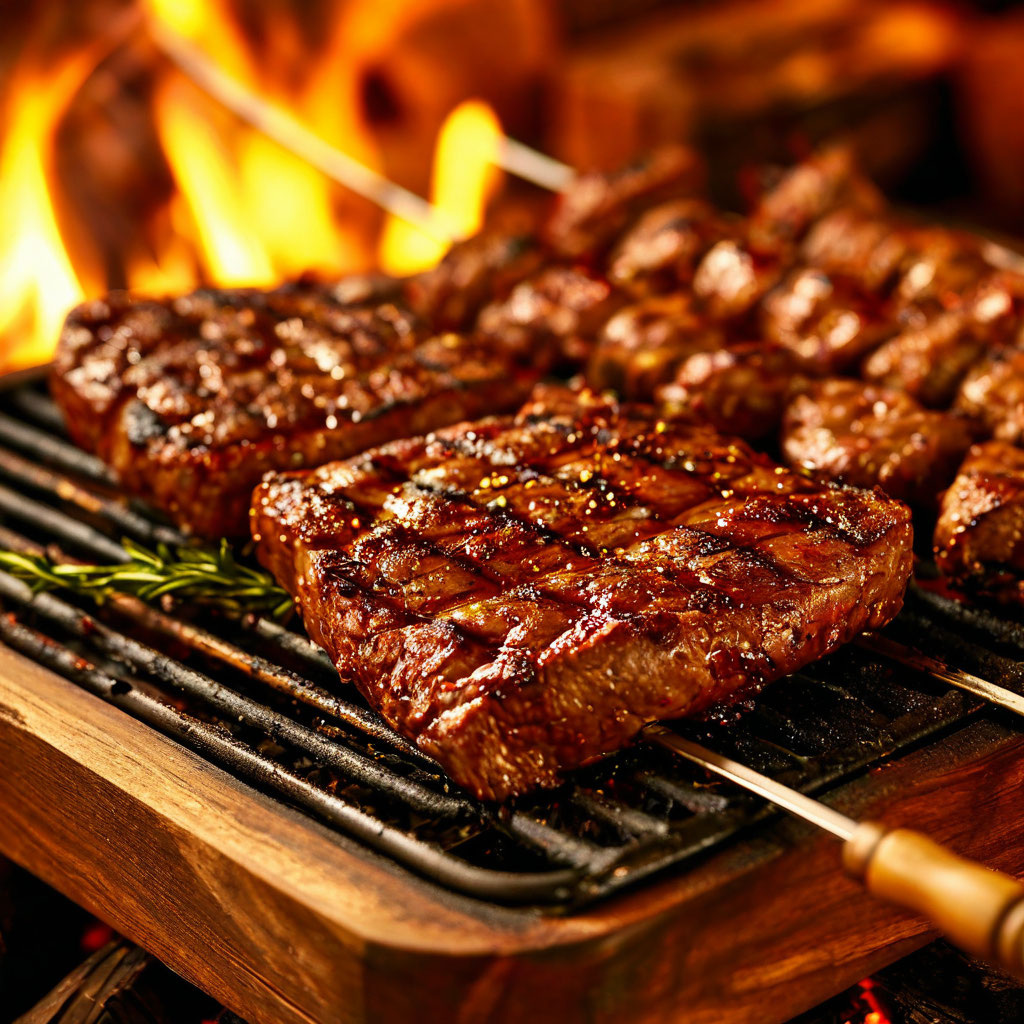 Как то мы сидели в компании друзей и к нам приехали наши гости из Грузии! Они то и научили нас готовить НАСТОЯЩИЙ традиционный Грузинский шашлык на мангале! Никакого извращения над мясом, специи, маринады, уксусы и прочая белиберда не нужна! Только сочный антрекот, соль и много лука. Берём мясо, режем на большие куски и кладём на решетку (соль и лук это всё позже!) Наши угольки в мангале уже готовы и не горят диким пламенем, а только дают хороший жар для приготовления. Решётку с мясом кладём на мангал и обжариваем равномерно мясо переворачивая каждые 2 минуты. Кусочки должны быть прожарены, чтобы не было внутри розоватости мяса, но при этом не допускайте высыхания мяса и обугливания кусочков. Пока мясо готовится, готовим большую кастрюлю с нарезанным полукольцами луком (ПРОПОРЦИИ 1:1 Лук 1, Мясо 1) кастрюля должна быть достаточно большой, чтобы оставалось пространство при закладке лука и мяса, если готовите на большую компанию) Как только наше мясо приготовилось, обильно посыпаем ег