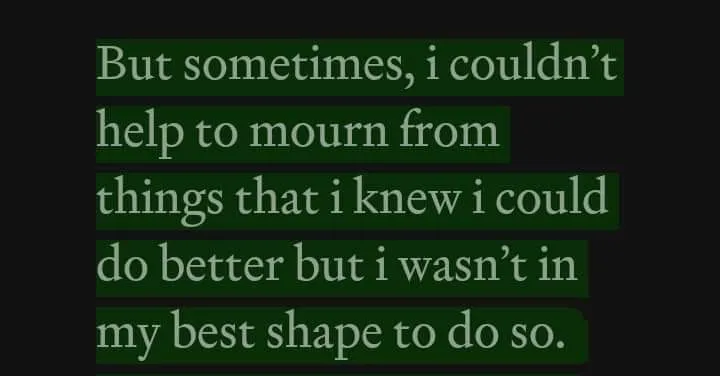 В жизни иногда трудно принять, что мы не всегда станем тем человеком, которым стремимся быть. Мы можем упустить возможности, потерять людей, которые, как мы думали, всегда будут рядом, или не осуществить мечту, к которой так долго стремились. Я знаю, это больно. Вы так сильно хотели, чтобы всё получилось, но бывают моменты, когда мы просто не в состоянии идти дальше. Может быть, мы напуганы. Может быть, у нас есть проблемы, о которых мы не подозреваем. Может быть, мы устали. Может быть, нас удерживает наша травма. Или, возможно, несмотря ни на что, мы просто не сделали достаточно. Но это не значит, что мы должны винить себя, потому что иногда всё идёт не по плану по причинам, которые вне нашего контроля. Может быть, этот путь был не для нас. Может быть, Бог хотел, чтобы мы стремились ещё усерднее, продолжали гнаться за своими мечтами и воплощать их в жизнь, несмотря на препятствия. Размышляя обо всём этом, я часто вспоминаю цитату из Августена Бёрроуза: "Скорбь — это сувенир любви. Это