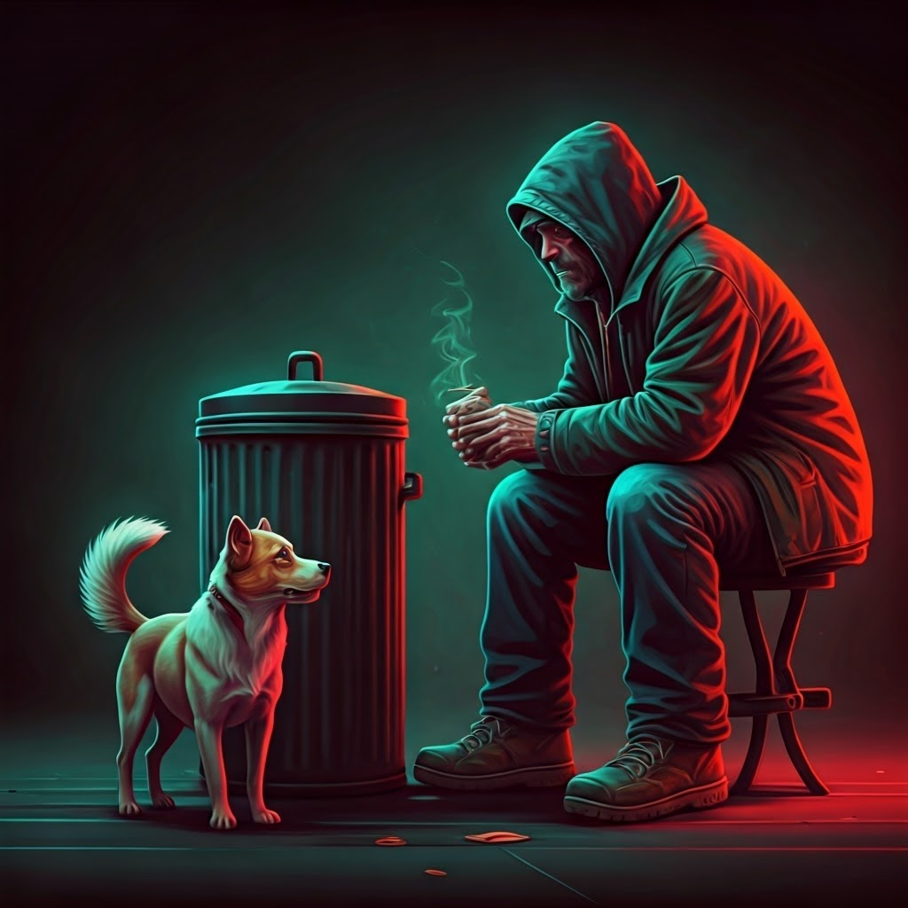 - Ну вот и зачем ты туда побежал? Ты обычно ж не бегаешь к бомжам, да и не виляешь им хвостом. Куда-то пропал твой нюх на людей?