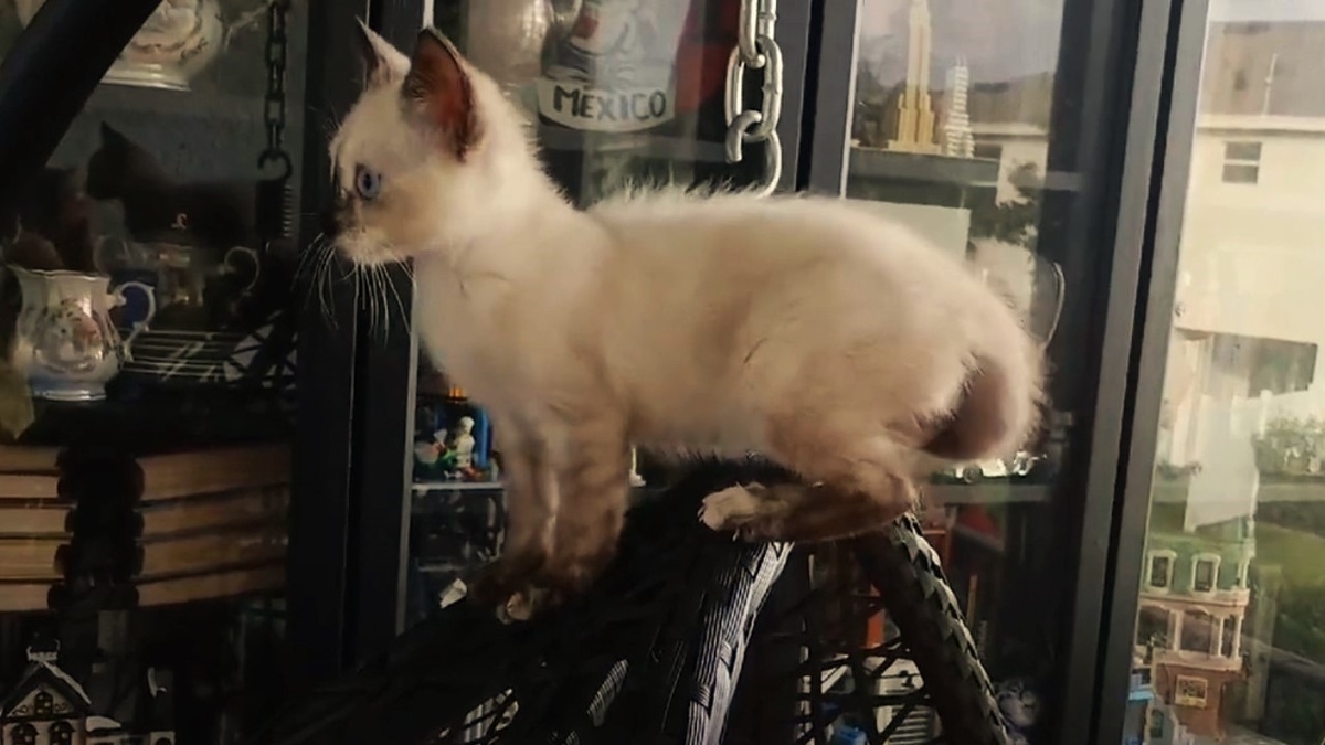 Котенок Луна такая смелая!