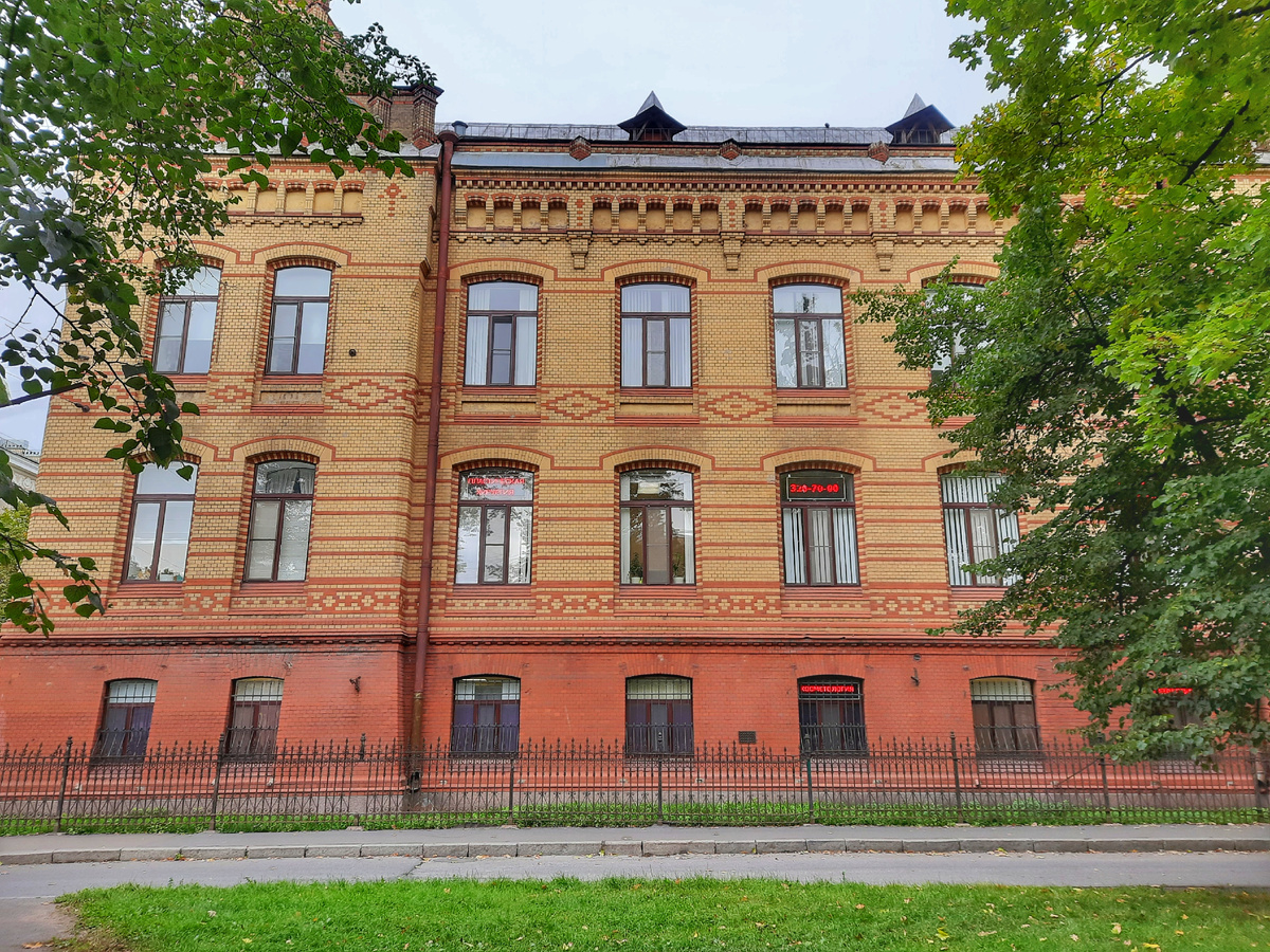 Это здание по адресу: Васильевский остров, Большой проспект, дом 49-51. Васильевский остров я указал потому, что в нашем городе имеется два Больших проспекта, второй находится на Петроградской стороне. Два номера в адресе указаны поскольку дом занимает два участка, наделяемых согласно генерального плана города. В 1760 году эти участки принадлежали одному чиновнику, затем переходили другим. В 1897-1899 годах по проекту К.К. Шмидта было построено здание Александрийского женского приюта, в котором предусмотрели помещения для родильного дома и больницы. Средства на постройку были собраны среди евангельских прихожан по инициативе пастора Фрейфельда и доктора К.Г. Видемана. Видеман был главным врачом больницы, которая в последствии носила его имя. В 1999 году в этом здании открыли многопрофильную клинику им. Н.И. Пирогова.
