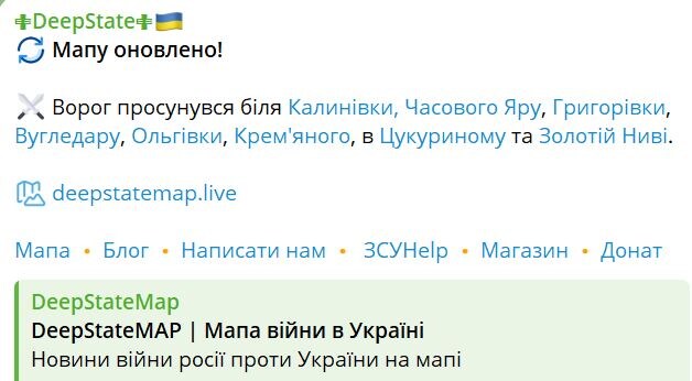 Вражеский Д-Ст на утро понедельника подтверждает наше продвижение у Калинівки, Часового Яру, Григорівки, Вугледару, Ольгівки, Крем'яного, в Цукуриному та Золотій Ниві. При этом на карте, публикуемой ДСт, отмечено лишь отступление из Кремяного, хотя в той же Ольговке наши солдаты фотографируются – и не только у указателей. В целом же карты, публикуемые вражеским Д-Ст на начало этой недели традиционно запаздывают. Единственное, что на них неизменно – ни на одном из направлений почти полуторатычекилометрового фронта нет ни одной стрелки, показывающей наступление ВСХ – исключительно наши – повсеместно. И лишь по Курщине стрелочек противник не рисует вообще – слишком уж этот участок фронта по политическим причинам важен для Кл-Рез – а хвастаться там давно уже нечем. Я не хочу бежать впереди паровоза, но очень похоже, что сейчас ВХ перемалывают сразу в нескольких небольших котлах на Курщине – часть попала в окружение между Любимовкой и Новым Шляхом, а часть – севернее – под Ольговкой. При эт