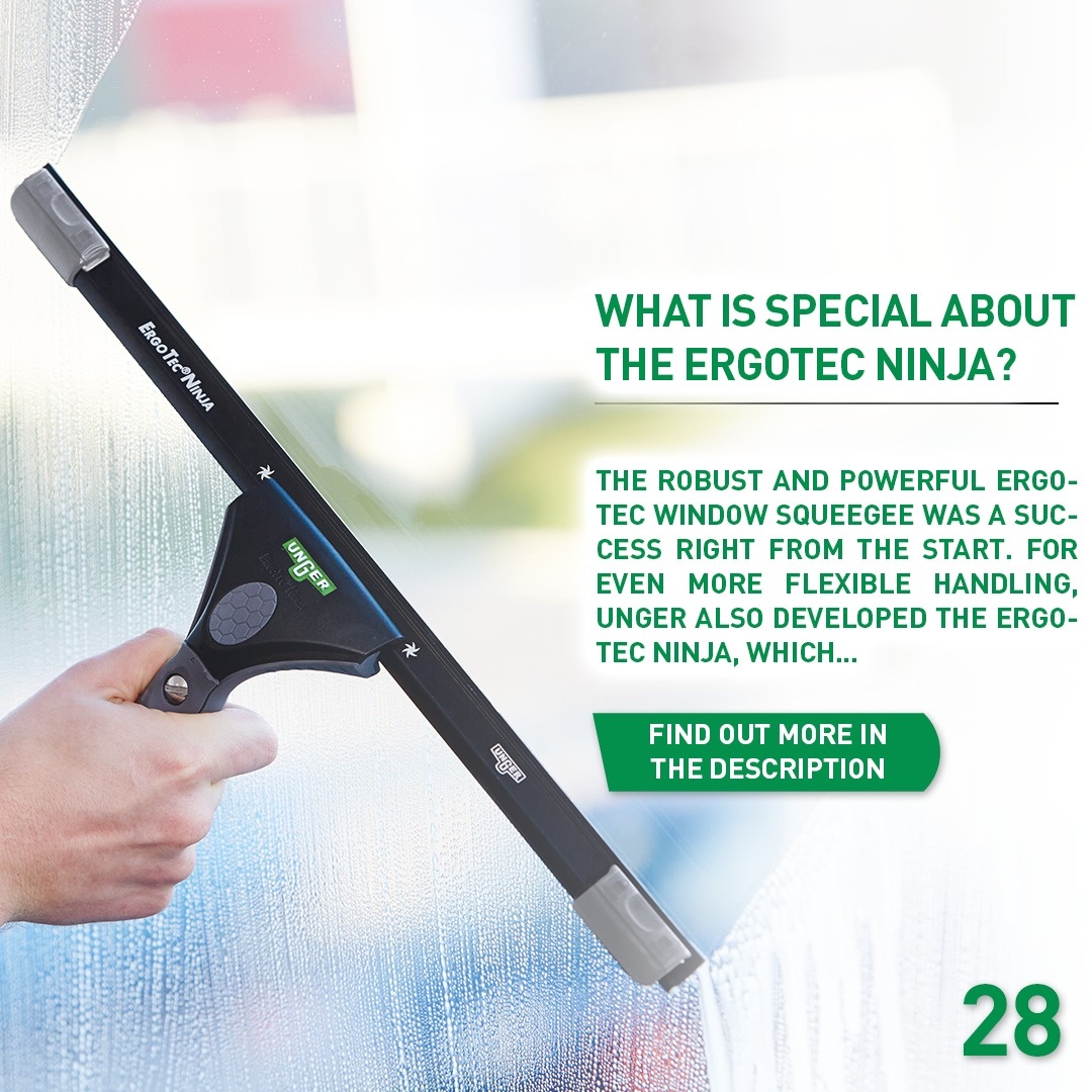 Система для мытья полов Unger erGO Clean производит революцию в классических системах мытья полов и распыления полов. Анализируя движения и точки напряжения во время мытья полов, была разработана эргономичная, удобная для тела система, которая позволяет выполнять типичное S-образное движение с минимальными усилиями с 2018 года. Подробнее... Что особенного в Unger ErgoTec Ninja? Надежный и мощный сгон для мытья окон Unger ErgoTec имел успех с самого начала. Для еще более гибкого использования компания UNGER также разработала ErgoTec Ninja, который оснащен более крупной эргономичной двухкомпонентной ручкой. Более прорезиненные поверхности обеспечивают оптимальный захват. Система зажимов, представленная в 2011 году, которая надежно удерживает каналы длиной до одного метра, объясняет название продукта: ErgoTec Ninja элегантно напоминает меч ниндзя и передает его силу этому сгону. Подробнее на нашем с