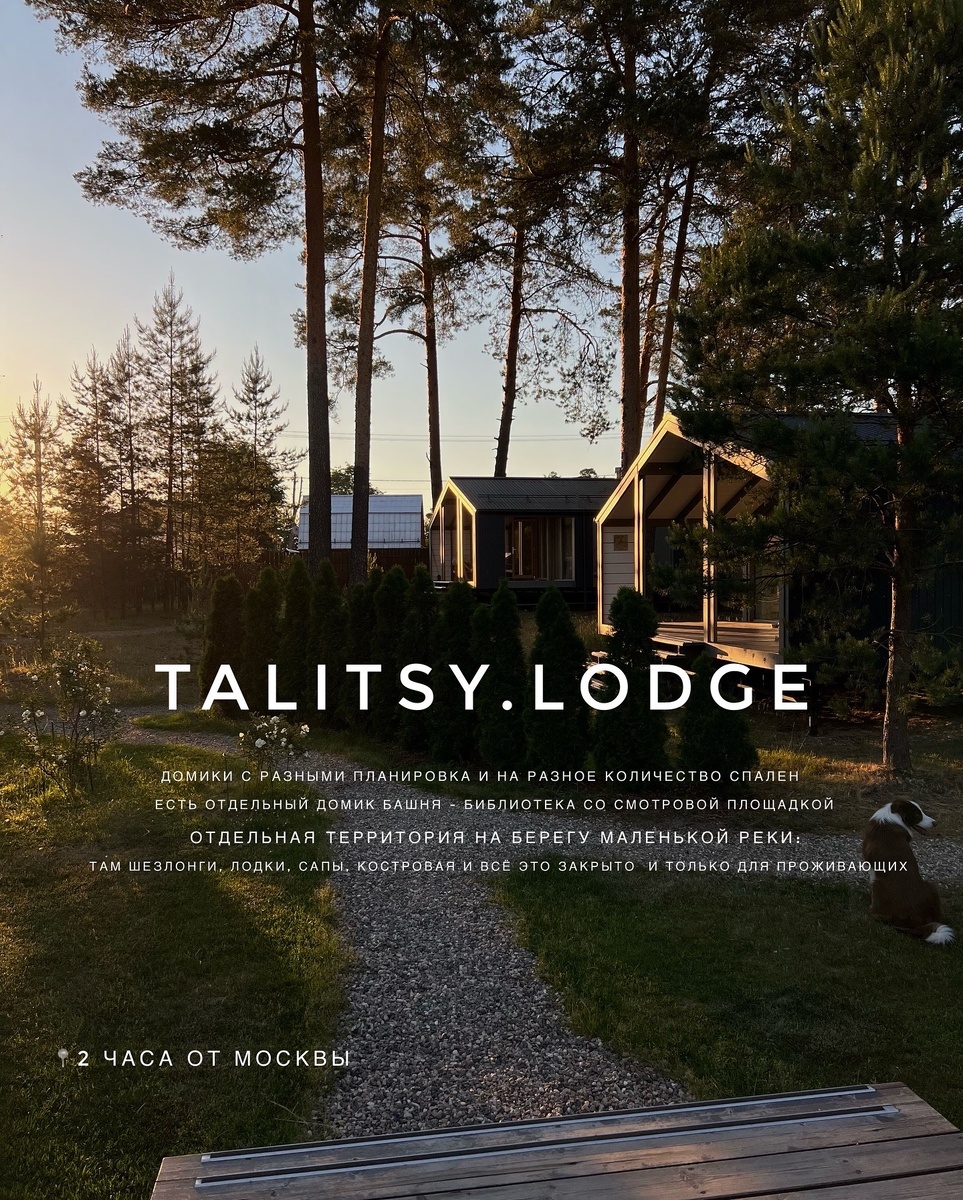 1. Talitsylodge - это дубльдома, компактно расположенные на территории, среди елового леса, и рассчитанные на разное количество гостей. Есть отдельный домик башня - библиотека со смотровой площадкой, любой взрослый может прикоснуться к своей детской мечте "мини домика на дереве". Отдельная закрытая территория на берегу маленькой реки с шезлонгами, лодками, сапами доступными только для гостей. Для детей есть отдельная игровая зона с классной детской площадкой в виде городка над землей. В общем идеальное место для размеренного семейного отдыха со скандинавским подходом в 1,5 часах от Москвы.