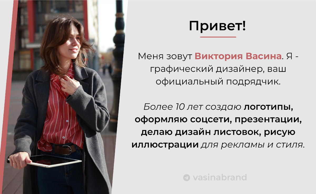 Инвестируя в качественный логотип и фирменный стиль, вы строите фундамент для вашего бизнеса. Не тратьте деньги на ненужные детали — лучше вложите их в создание запоминающегося бренда. С моей помощью вы сможете построить визуально привлекательный бренд, который будет выделяться и привлекать клиентов.