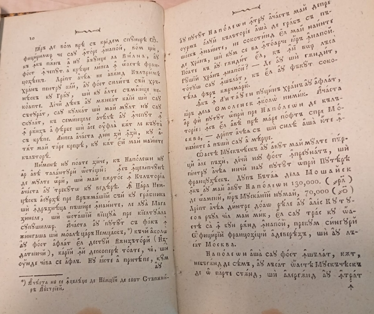 ... continuare Iară de vom vre să credem spunerea Ofițirilor ce s-au întors înapoi, vom ști, că încă până a nu ajunge la Vilna, au fost încput a crește lipsa în oaste franțozească. Drept aceea ne având Călărimea hrană pentru cai, au fost silită să-i hrănească cu Grâu, și cu alte sămințe necoapte. Deci deacă au mâncat caii și s-au săturat, s-au culcat și mai mult nu s-au sculat, că semințele acelea au început în rânză a ferbe și ase umfla cât le căuta să crepe. Lipsa aceasta din zi înzi, cu atât mai tare crește, cu cât ei mai nainte călătore. Nimeni nu poate zice, că Napoleon nu ar avea talanturi ostești; însă înțelepciunea de multe ori, și mai vârtos în Călătoria aceasta au trecuto cu vederea. În Țara Nemțească asurze pre Vrăjmașii săi cu grabnica și îndrăzneața pășire înainte, le lua Magazinele, și ostașii viețuia pre cheltuiala supușilor. Aceasta au putut să facă în jingașa și moalea țară Nemțască, *) căci acolo au fost aflat el destui Vânzători (Izdatnici), caii îi descoperea toate,