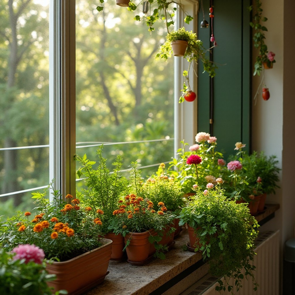 1. **Вертикальные сады** – используйте стенки и специальные конструкции для создания вертикальных садов с горшками. 2. **Подвесные кашпо** – повесьте кашпо с цветами или зеленью на перилах или потолке балкона. 3. **Горшки различных размеров** – комбинируйте горшки разных форм и размеров для создания интересной композиции. 4. **Сад на подоконнике** – используйте подоконники для размещения трав, зелени или цветов, которые любят солнечный свет. 5. **Мини-огороды** – сажайте овощи и зелень в контейнерах, таких как томаты, перцы, базилик или шпинат. 6. **Мебель для отдыха** – добавьте удобные стулья или гамаки для создания комфортного места для отдыха. 7. **Многоуровневые полки** – используйте многоуровневые полки для размещения растений и создания красивого оформления. 8. **Садовые ограждения** – установите декоративные ограждения, чтобы разделить пространство и создать уют. 9. **Использование цветных горшков** – выбирайте яркие и красочные горшки для создания живого настроения.