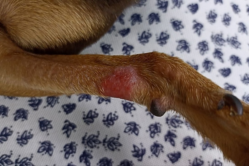 - может наблюдаться поражение когтей, пальцев и подушечек лап – покраснение кожи, появление корочек, гнойничков, иногда язвочек. Когти становятся ломкими и деформируются. Животное беспокоится - активно вылизывает проблемный участок. Может сопровождаться хромотой и неприятным запахом от пораженной конечности