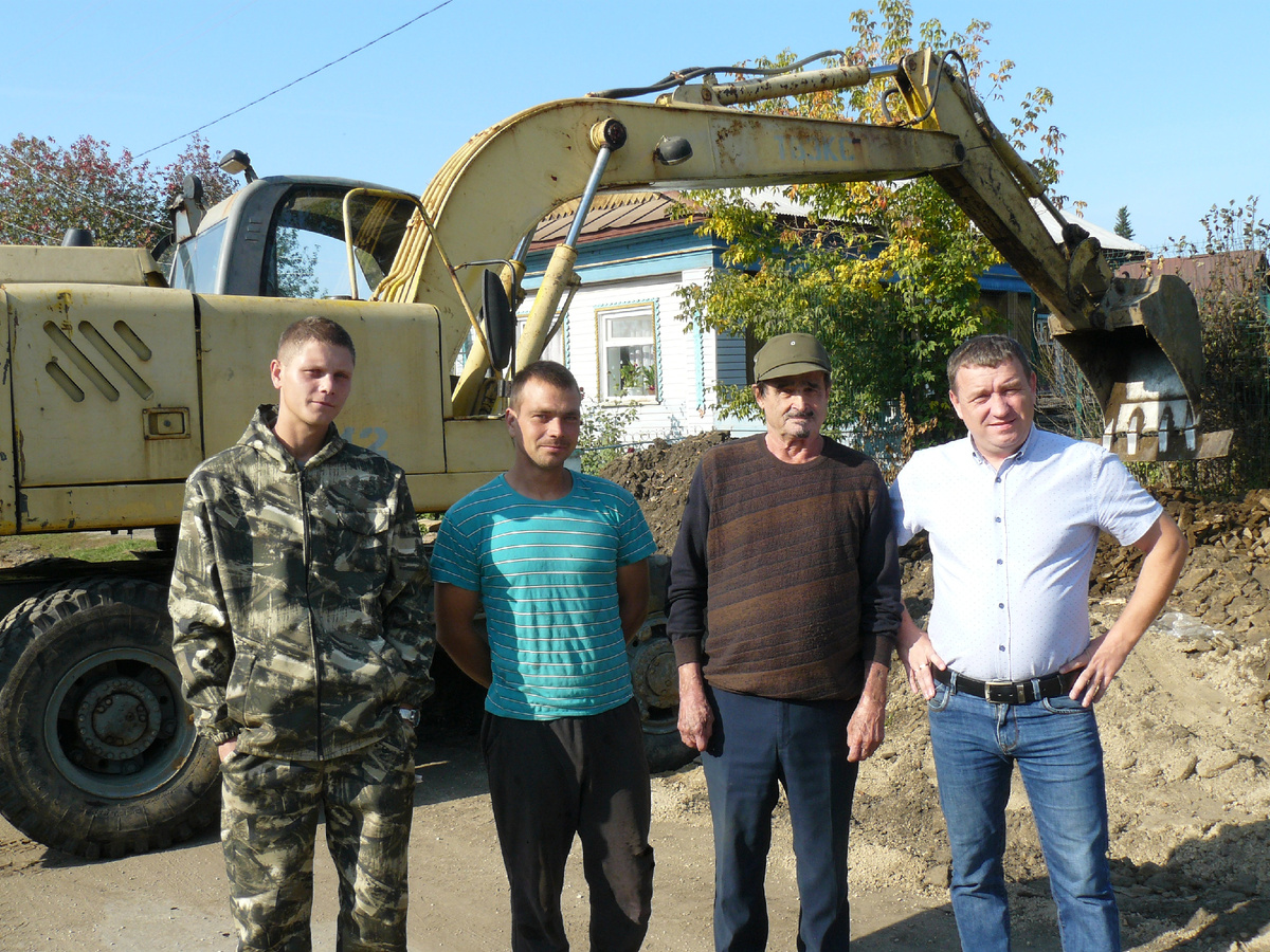 Вся водопроводная сеть прокладывалась строго в соответствии с составленной схемой. В схеме отображается не только протяженность разных участков водопровода, но и все ответвления. Прокладка труб под землей производилась на определенной глубине (2 м 20 см) и с соблюдением ряда других условий. Все участки водопровода собирались над землей и только потом погружались в траншею. Чтобы водопровод исправно работал, его схема составлялась без большого количества резких поворотов или изгибов труб. После того, как трубы были проложены, мы их проверяли на соответствие схеме и засыпали слоем грунта. Здесь нужно отметить, что в период строительства погода нас не баловала - шли дожди, но, несмотря на это, сети проложены. Сложность была и в подводке к домам - хозяева не могли точно указать место подведения, приходилось искать металлоискателем. Для жителей домов на перекрытых участках, осуществлялся подвоз в бочках свежей питьевой воды. На участках дороги, где проложен асфальт, делали проколы, чтобы не портить дорожное покрытие. Сейчас ведутся работы по восстановлению и благоустройству инфраструктуры.