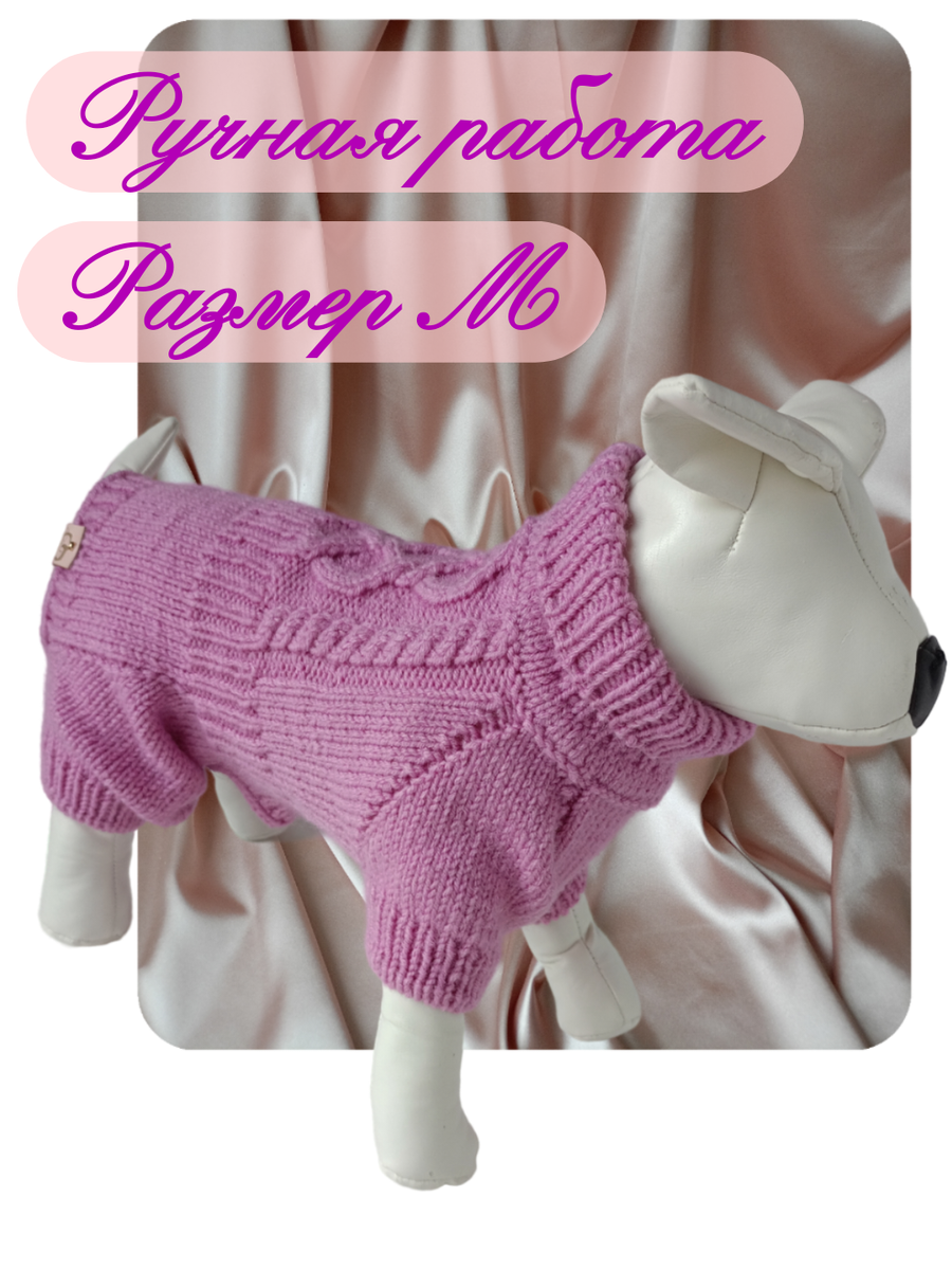 Этот очаровательный вязаный комбинезон розового цвета размера М (окружность шеи 24-26 см., окружность груди 34-40 см., длина по спинке от воротника 29 см.) станет идеальным выбором для вашего маленького пушистого друга. Изделие ручной работы не только стильно смотрится, но и отличается высоким качеством выполнения, что гарантирует комфорт и уют вашему питомцу в любое время года. Этот свитер предназначен специально для собак мелких пород, таких как чихуахуа, йоркширский терьер, той-терьер и другие, поэтому он идеально подошел для чувствительной кожи и утонченного телосложения вашего питомца. Тёплый комбинезон обеспечит надежную защиту от холода во время прогулок, позволяя вашему любимцу наслаждаться свежим воздухом без опасений замерзнуть. Изготовленный из мягкой и гипоаллергенной пряжи, этот свитер не вызывает раздражений и обеспечивает максимальный комфорт при ношении. Эластичный материал позволяет свободно двигаться, не сковывая естественные движения вашего питомца. Ручная работа м