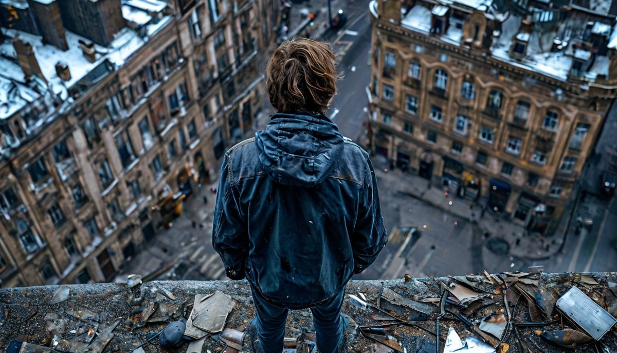 Он стоял на краю крыши многоэтажки, ветер рвал его куртку, а в ушах звенела музыка с вечеринки внизу. Макс, с непослушными волосами и тусклыми глазами, больше не чувствовал себя живым. Вечеринка кипела, но ему было всё равно — сердце переполняло одиночество. На миг ему казалось, что он может просто спрыгнуть и исчезнуть, как ускользающая тень. «Ты в порядке?» — услышал он голос за спиной. Это была Юля, его подруга с детства, с яркими волосами и вызывающим макияжем, которая всегда умела поднять настроение. Но Макс знал, что её улыбка — лишь маска. «Что ты здесь делаешь?» — пробормотал он, отворачиваясь. Юля шагнула ближе, запах её парфюма смешивался с запахом пота и алкоголя, доносящегося с вечеринки. «Я пришла за тобой. Все волнуются». «Не волнуйся, я не собираюсь прыгать», — в очередной раз отмахнулся он, но в глубине души понимал, что его внутренний конфликт зреет. Он не мог объяснить, почему ему так хочется уйти, оставить всё позади. — Знаешь, ты ведь не единственный, кто страдает,
