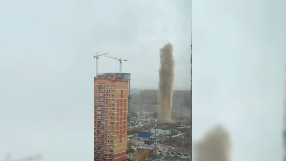 В Подмосковье забил «фонтан» из грязи высотой в многоэтажку — Видео
