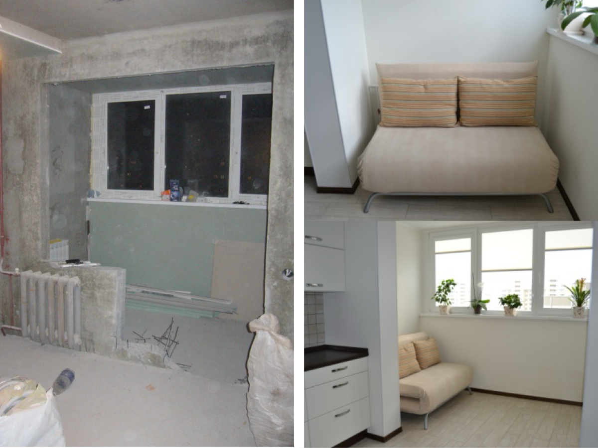 • Кухня, совмещение нескольких зон. Фото ДО/ПОСЛЕ