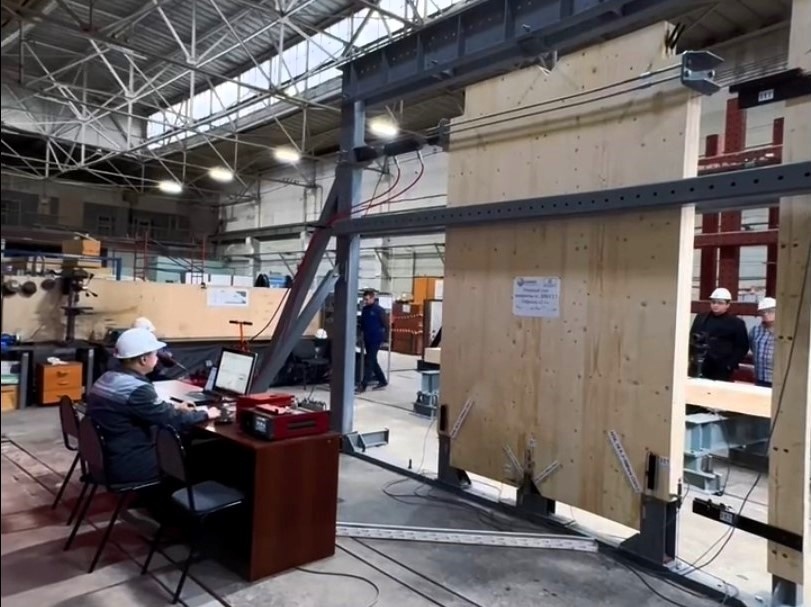 В лаборатории несущих деревянных конструкций ЦНИИСК им. В.А. Кучеренко АО «НИЦ «Строительство» при экспертном участии Александра Погорельцева с высочайшими результатами проведены испытания жестко защемленного опорного узла стеновой диафрагмы из перекрестно-клееной древесины ДПК/CLT для каркасной системы деревянных зданий. Один из «отцов» развития современной клееной древесины и самых уважаемых экспертов отрасли деревянного строительства России Александр Алексеевич Погорельцев – кандидат технических наук, главный специалист лаборатории несущих деревянных конструкций ЦНИИСК, изобретатель, автор научных трудов и исследований свойств современных деревянных конструкций, СП и ГОСТов, бессменный участник и дважды председатель Правления Ассоциации деревянного домостроения.