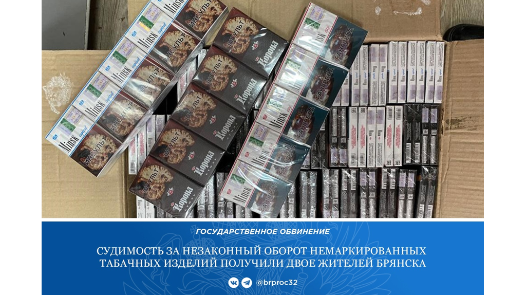 В Брянске суд вынес приговор по уголовному делу в отношении 35-летнего и 37-летнего местного жителей. Их признали виновными в приобретении, хранении и продаже немаркированных табачных изделий, рассказали в пресс-службе региональной прокуратуры. В декабря 2022 года сообщники приобрели более 6 тысяч пачек сигарет без акцизных марок Затем они продали контрафактный товар в торговые павильоны города. Стоимость табачных изделий составила более 800 тысяч рублей. Суд приговорил виновных к штрафу в размере 600 тысяч рублей каждому. В Брянске двое торговцев сигаретным контрафактом получили по штрафу в 600 тысяч рублей